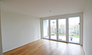 Die Wände in der Wohnung sind aufwändig gespachtelt und schaffen ein elegantes Ambiente. Das hochwertige Parkett sorgt für eine wohnliche Atmosphäre. Highlight dieser Wohnung ist natürlich die geräumige Terrasse, die zum Verweilen einlädt vom Wohnzimmer aus abgeht.