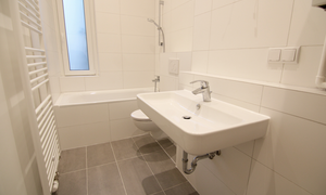 Ihre neue Mietwohnung wurde in den letzten Monaten komplett hergerichtet, es handelt sich um einen Erstbezug nach umfassender Modernisierung. Die Arbeiten sind kurz vor dem Abschluss und die Wohnung könnte vermutlich schon zeitnah bezogen werden. Der Grundriss zeigt zwei separate Zimmer, ein Badezimmer und eine geräumige Küche. Die beiden Zimmer liegen etwas weiter auseinander, so dass die Nutzung auch für eine WG vermutlich ideal wäre. Das Badezimmer wurde komplett neu hergestellt und erhielt eine hübsche Fliesung, Das Badezimmer ist als Wannenbad ausgebildet, und auch ein Fenster ist hier vorhanden. In der geräumigen Küche sollten Sie bequem einen Essplatz einrichten können, die Küche ist mit Ceranherd und Spüle ausgestattet.
