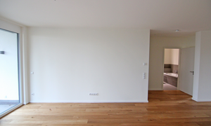 Die Wände in der Wohnung sind aufwändig gespachtelt und schaffen ein elegantes Ambiente. Das hochwertige Parkett sorgt für eine wohnliche Atmosphäre. Ein weiteres Highlight dieser Wohnung ist der geräumige Balkon, die zum Verweilen einlädt und vom Wohnzimmer aus abgeht.