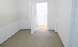 Der Grundriss zeigt einen angenehmen Flur, zwei separate Zimmer, ein Badezimmer, eine Küche und eine in 2023 errichtete Terrasse. Das Badezimmer wurde in 2023 komplett neu hergestellt und erhielt eine hübsche Fliesung. Das Badezimmer ist als Wannenbad ausgebildet. Die Ausstattungen sind angenehm und hochwertig: die Wände wurden aufwändig feingespachtelt - für eine elegante Note. Der schöne Parkettboden schafft eine eine einladende Wohlfühlatmosphäre. Die Küche wurde in 2023 neu gefliest, hier werden ein Ceranherd und eine Spüle für Sie bereitstehen. Die Beheizung dieser Wohnung erfolgt über eine Zentralheizung.