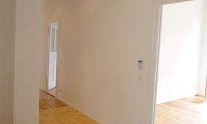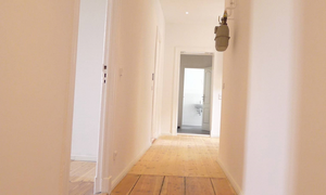 Die Wohnung verfügt über ein elegantes, sehr freundliches Ambiente. Erfreulicherweise werden die Wände damals aufwändig gespachtelt (keine Rauhfaser). Die abgeschliffenen Dielenböden (1 Zimmer mit Parkettboden) schaffen ein sehr angenehmes Wohnambiente. Auch die beiden sanierten, komfortablen Badezimmer (1x Wannenbad, 1x Duschbad) und die offen gehaltene Küche wurden komplett bei der letzten Sanierung neu gestaltet. Das Gäste-Duschbad ist vom Flur aus erreichbar und erfüllt damit auch die Funktion eines Gäste-WCs. Downlights in Badezimmer und auch im Flur sorgen für stimmungsvolle, unkomplizierte Beleuchtung. Die Wohnung ist ausgezeichnet belichtet und besonnt. Von der Wohnung aus haben Sie einen atemberaubenden Weitblick über die Frankfurter Allee. Die Küche wird ohne Ausstattungen und ohne Küchenmöbel übergeben. Die Wohnung wird im derzeitigen Ist-Zustand und ohne eigentümerseitige Arbeiten vermietet.
