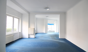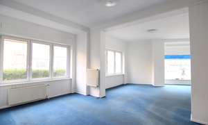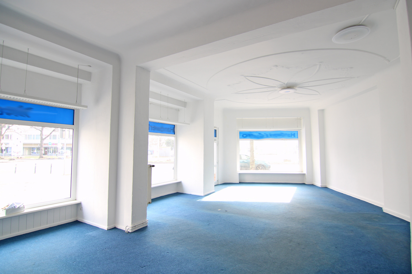 Über die großen Schaufenster (in drei Richtungen!) werden Sie bestens auf Ihr Produkt aufmerksam machen können, die Einsehbarkeit der Fläche ist durch die Ecklage hervorragend. Die Hauptfläche verfügt über einen sehr großen Raum, den Sie bei Bedarf und vorheriger Abstimmung noch unterteilen und an Ihren Bedarf anpassen können. Hier ist vieles möglich: der große Raum wäre natürlich ideal für ein Ladengeschäft, für Ausstellungszwecke oder auch z.B. ein Café. Sollten Sie gastronomische Leistungen anbieten, ist es aber wichtig zu wissen, dass die Installation einer Abluftanlage nicht gewünscht ist. Ein Café mit kalter Küche, ein Frühstücksafé o.ä. wäre jedoch sicher möglich. Die Hauptfläche verfügt im hinteren Bereich über eine etwas kompaktere Küche, auch sind zwei WCs bereits vorhanden. Diese Hauptfläche hat eine Größe von ca. 175,00 m². Die Mietfläche ist überaus hell und gut belichtet.