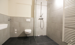Auch die Sanitärausstattung ist komplett neu entstanden: das Hauptbadezimmer ist mit eine bodentiefen Dusche ausgestattet und zeigt moderne Fliesungen. Besonders praktisch ist sicher das Gäste-WC, das ebenso hohen Komfort bietet. Die Küche wird in offener Bauweise in einem der Zimmer realisiert (siehe auch anliegende Grundrissskizze), sie wird eigentümerseitig noch mit einem Ceranherd, eine Spüle und einem Kühlschrank ausgestattet. Die Elektrik ist komplett neu, zeitgemäßen Wohnkomfort schafft überdies die moderne Videosprechanlage. Die Beheizung erfolgt über Fernwärme.