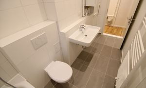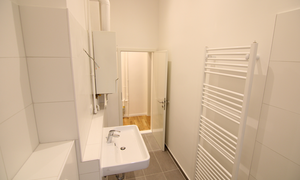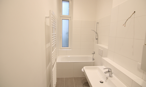 Ihre neue Mietwohnung wurde in den letzten Monaten komplett hergerichtet, es handelt sich um einen Erstbezug nach umfassender Modernisierung. Die Arbeiten sind kurz vor dem Abschluss und die Wohnung könnte vermutlich schon zeitnah bezogen werden.  Der Grundriss zeigt zwei separate Zimmer, ein Badezimmer und eine geräumige Küche. Die beiden Zimmer liegen etwas weiter auseinander, so dass die Nutzung auch für eine WG vermutlich ideal wäre. Das Badezimmer wurde komplett neu hergestellt und erhielt eine hübsche Fliesung, Das Badezimmer ist als Wannenbad ausgebildet, und auch ein Fenster ist hier vorhanden. In der geräumigen Küche sollten Sie bequem einen Essplatz einrichten können, die Küche ist mit Ceranherd und Spüle ausgestattet.