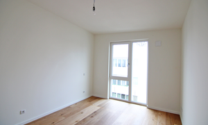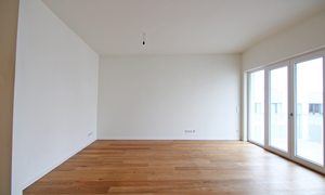 Die Wände in der Wohnung sind aufwändig gespachtelt und schaffen ein elegantes Ambiente. Das hochwertige Parkett sorgt für eine wohnliche Atmosphäre.