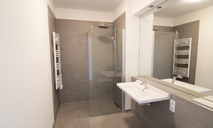 Diese Wohnung liegt im gut belichteten, sehr hellen 2.OG, ein Aufzug ist vorhanden. Die Wohnung wurde im Jahr 2020 komplett neu errichtet (Neubau) und überzeugt mit hohem Wohnkomfort. Der Grundriss überzeugt auf ganzer Linie: das Wohnzimmer ist gut unterteilt, hier wurde auch eine Einbauküche in offener Bauweise integriert. Die Einbauküche ist modern gehalten und bietet hohen Komfort. Die beiden Schlafzimmer haben angenehme Größen und sollten sich sehr gut nutzen lassen. Das Badezimmer zeigt eine moderne, ansprechende Fliesung und ist mit einer großen, bodentiefen Dusche versehen. Die hübsche Fliesung und die gelungene Aufteilung lassen das Badezimmer zu einem echten Wohlfühlbad werden. Die Beheizung in der Wohnung erfolgt über eine komfortable Fußbodenheizung.