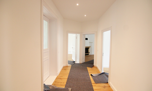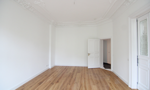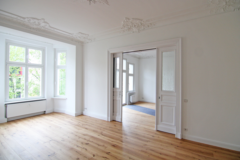 Mit viel Liebe zum Detail wurde diese Wohnung im Jahr 2023 umfassend modernisert, vorliegend handelt es sich um einen Zweitbezug nach umfassender Modernisierung. Die Wohnung liegt im 3.OG des Vorderhauses (mit sehr stuckreichem Treppenhaus!); ein Aufzug ist erfreulicherweise vorhanden. Liebhaber von Jugendstildetails kommen bei dieser Wohnung voll auf ihre Kosten: die Wohnung überzeugt mit vielen originalerhaltenen, herrlichen Stilelementen aus der Bauzeit. Einige Flügel- und Schiebetüren sowie imposanter, sehr schöner Deckenstuck sind gut erhalten. Das Ambiente ist wahrlich eines Altbaus würdig und vermittelt ein erhabenes, tolles Wohngefühl. Bodenseitig wurde in 2023 neues Parkett verlegt und die Wände aufwändig gespachtelt - für ein elegantes Wohnambiente. Gleich zwei Bäder sind vorhanden, auch diese sind in 2023 komplett neu entstanden und bieten hohen Wohnkomfort.