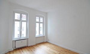Der Grundriss ist ausgezeichnet und bei Bedarf auch sehr schön für eine 4er-WG geeignet. Neben drei straßenseitig vorhandenen Zimmern (von dem aus auch der Balkon erreicht wird) liegt hofseitig ein weiteres, mittelgroßes Zimmer und ein sehr großes Berliner Zimmer. Alle Zimmer sind separat vom Flur aus erreichbar, so dass sich diese Wohnung für eine 4er-WG mit großem Aufenthaltsraum sicher sehr gut eignen würde. Die Beheizung dieser Mietwohnung erfolgt über die Zentralheizung des Hauses.