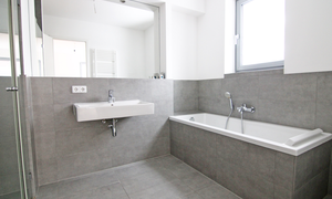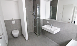 Aus dem 2.OG haben Sie einen wunderbaren Blick auf den Park. Ein Aufzug ist natürlich vorhanden. Die Wohnung wurde im Jahr 2015 komplett neu errichtet (Neubau) und überzeugt mit hohem Wohnkomfort. Der Grundriss überzeugt auf ganzer Linie: das Wohnzimmer ist sehr geräumig gehalten und gut unterteilt - es geht offen in einen Küchenbereich über, in dem die Eigentümer eine Einbauküche installiert haben. Die Einbauküche ist modern gehalten und bietet angenehmen Komfort. Die beiden Schlafzimmer haben angenehme Größen und sollten sich sehr gut nutzen lassen. Gleich zwei vollwertige Bäder sind vorhanden: eines mit Badewanne UND Dusche, das zweite Bad ist als Duschbad gehalten und erfüllt in der Nähe des Wohnungseingangs auch die Funktion eines Gäste-WCs. Die Fliesungen sind modern und ansprechend. Die Beheizung in der Wohnung erfolgt über eine komfortable Fußbodenheizung. Weiterhin vorhanden ist ein sehr praktischer Hauswirtschaftsraum mit Anschluss für Ihre Waschmaschine.