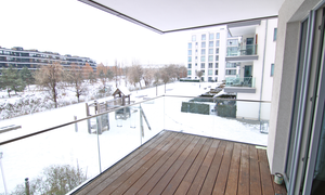 Die Wände in der Wohnung sind aufwändig gespachtelt und schaffen ein elegantes Ambiente. Der Parkettboden sorgt für eine wohnliche Atmosphäre. Highlight dieser Wohnung ist natürlich der große Balkon, der zum Verweilen einlädt und vom großen Wohnzimmer/Küchenbereich aus abgeht. Auch um Ihr Kraftfahrzeug müssen Sie sich nicht sorgen: für Ihren Wagen gibt es einen Tiefgaragenstellplatz, der für einen Mehrpreis von EUR 145,00/Monat mit angemietet werden muss. Die Tiefgarage ist hell und angenehm zu befahren, da sie recht großzügig ist.